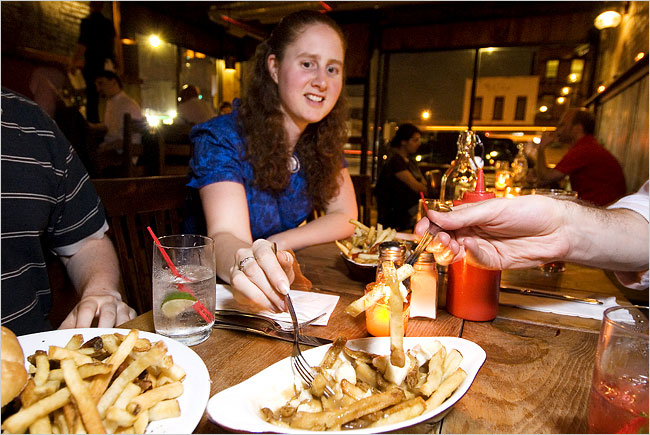 It appears poutine is on the rise. It's reported to be flourishing in New York (here is an article from the New York Times on itperhaps you need to be registered to access it. But here are some pix from the story, and from the loving aspect of them you can see that the article is flattering. [rpg 2007]
