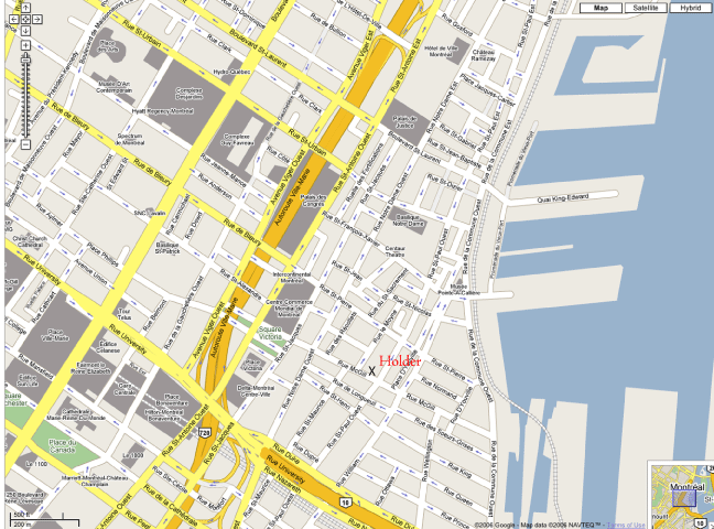 Down below the Baton Rougeone floor below it on the elevator in the Hyatt lobbyis a food court. (It has a good coffee shopthe closest one to the elevatorsa good chocolate place, and a grocery store at the far end (IGA).) In the food court is a place that serves hot dogs and poutine! Poutine (pronounced, roughly, poo-teen) is a dish consisting of french fries topped with fresh cheese curds and covered with hot gravy (usually brown gravy) and sometimes other additional ingredients like sausage. It’s a sort of national dish in Québec, and I recommend you try it (but probably not at this place), but I also recommend that you get a group and order one plate for all of youthe more of you the better. In the Summer of 2006 I was biking from Nashua, NH, to Québec City with the drummer in my old band, and we had dinner in Victoriaville with his family who were sagging us. Well, they ordered poutine after telling me about it the previous nights. It was as bad tasting as the description sounds. But, I put it down as a category of food Brian Foote clued me into in Scotland a few years back: Perhaps this was airline poutine. (Like the airline hagus they served us at ECOOP 2005.) When we got to Québec City, we had dinner in one of the nicest restaurants there, and we decided to get poutine to compare with the small-town versi0n. Worse. A lot worse. [rpg 2007]