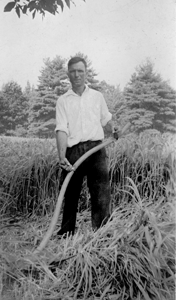 There is only one clear photograph of him left: He is standing in a hayfield with a scythe, wearing clothes we'd expect to see on a farmer on the plains back in the 1860s. He looks strong and vital but approachable. He's cutting hay which he'd feed to the cows in Winter. He worked days as an autobody mechanic, and his specialty was making custom sheet metal for cars. His wife - my grandmother - and my mother and uncle would take care of the farm during the day while he went to Amesbury to work. My grandfather worked hard and he worked skillfully, and my mother would expect that of everyone close to her.